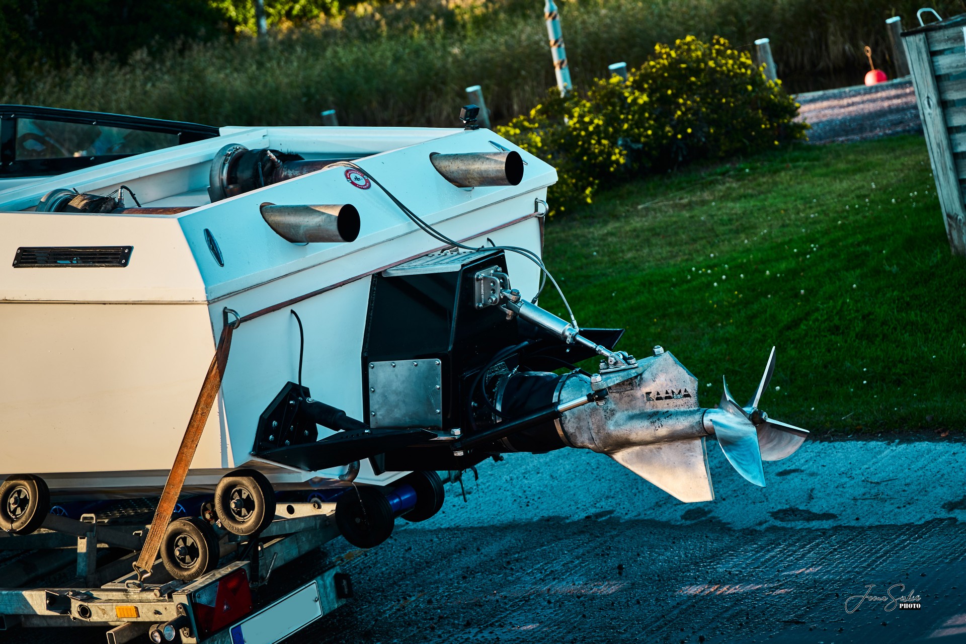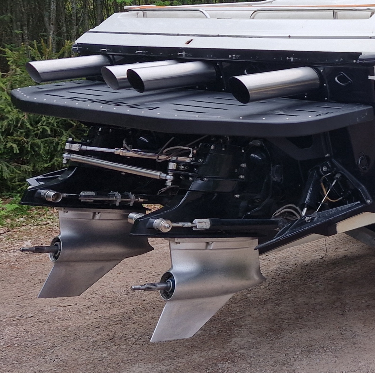 Exhaust pipe end tips Custom made aluminum swim platform Cavitation plate for Bravo sterndrive Custom seat frame Customized vinyl graphics